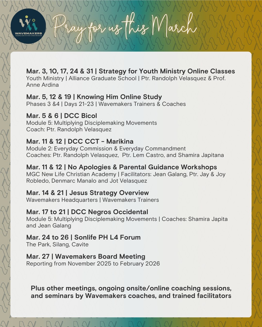 Our hearts are full this February with many God-given opportunities to make an impact on Wavemakers partners, whether online or onsite. Through trainings, coaching conversations, and meaningful collaborations, we continue to equip leaders who are passionate about seeing Christ-centered movements grow in their communities.