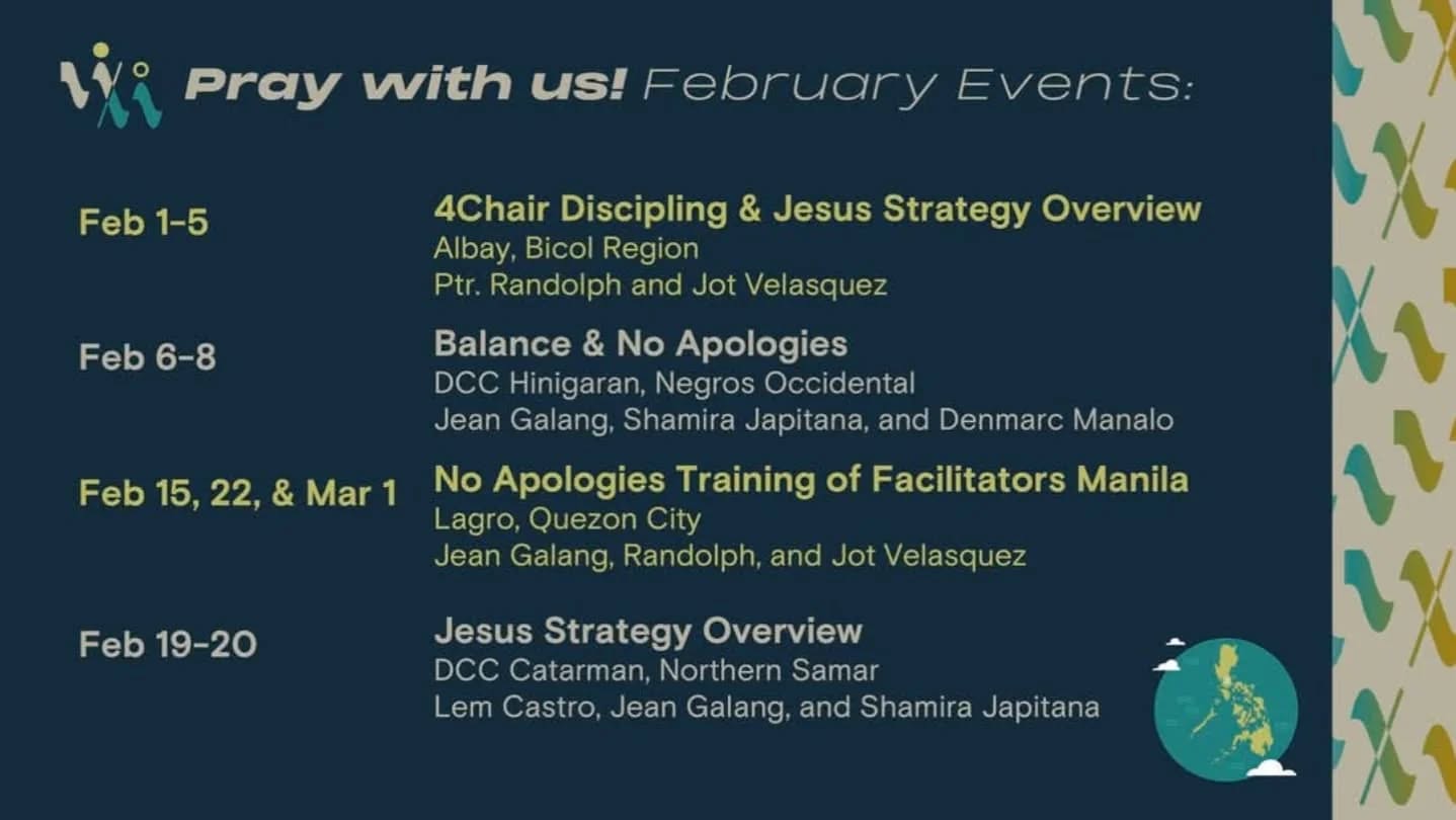 These are our ministry highlights for January.Praise God for a great start to the new year!Pray for and join us in February.Contact us at partner@wavemakers.org.ph or leave us a message here. Previous Post Wavemakers Team at IDC 2025 Next Post Disciplemaking Coaching Center, Oriental Mindoro
